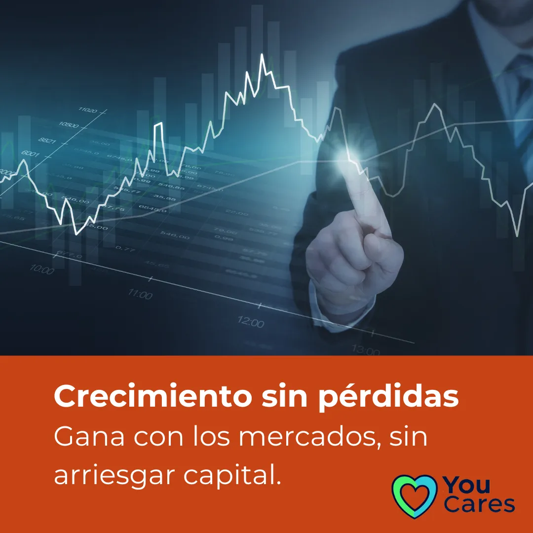 Es un seguro de vida con componente de ahorro que crece con el mercado, sin el riesgo de perder dinero.